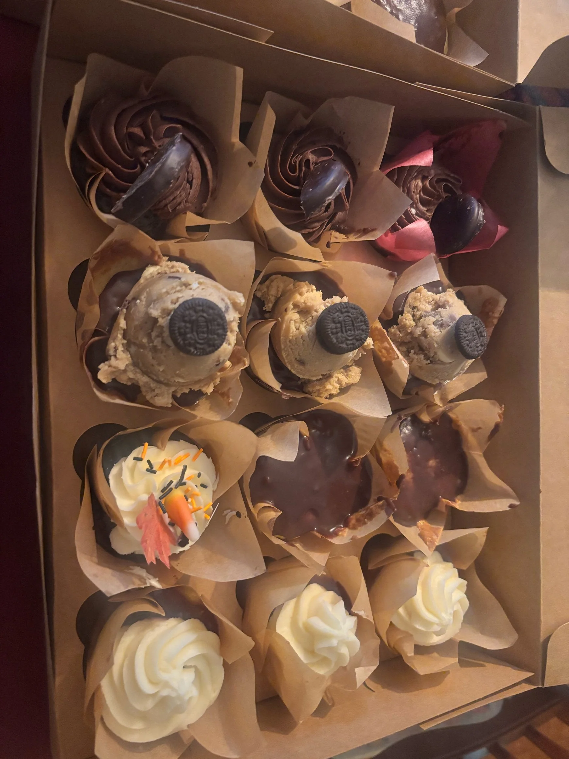 Yellow and chocolate cupcake with eggless chocolate cookie dough