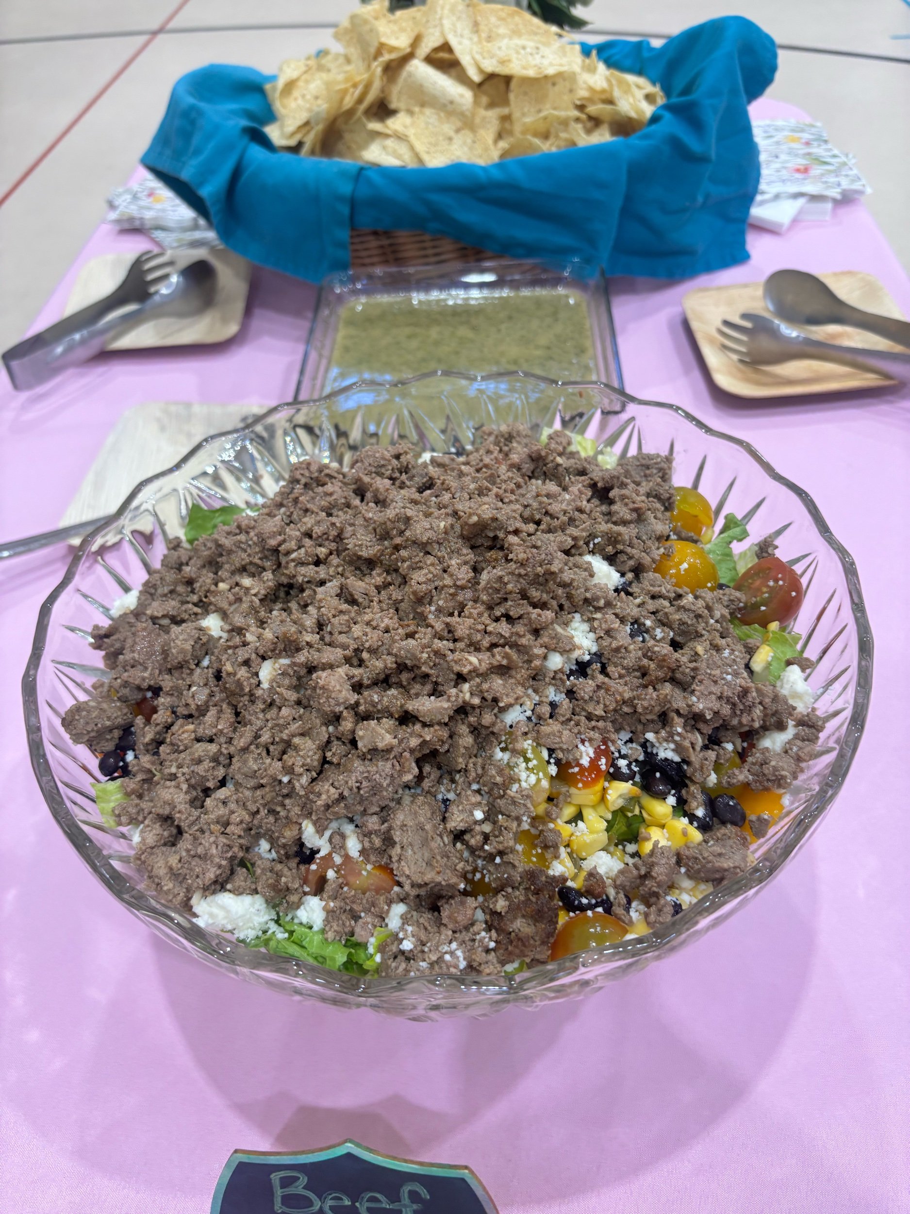 Romaine lettuce, pasture raised Sweet Grass beef, corn, tomatoes, roasted peppers and onions, queso fresco, tortillas, cilantro vinaigrette