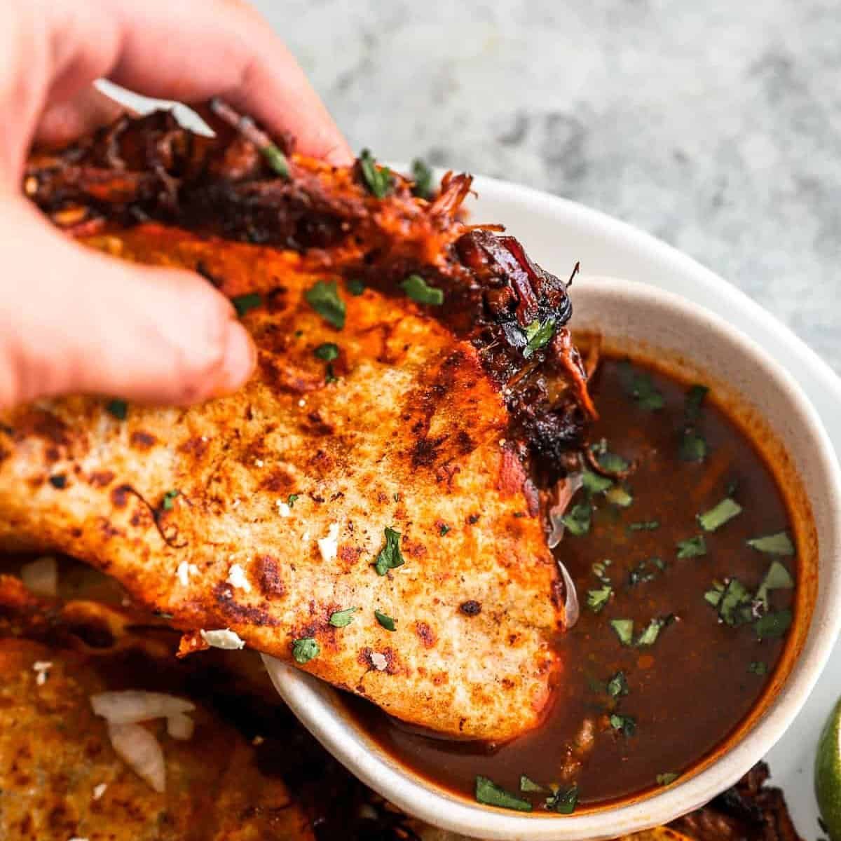 Enjoy the birria meat/mushrooms, rice and beans- make your own meal with it!