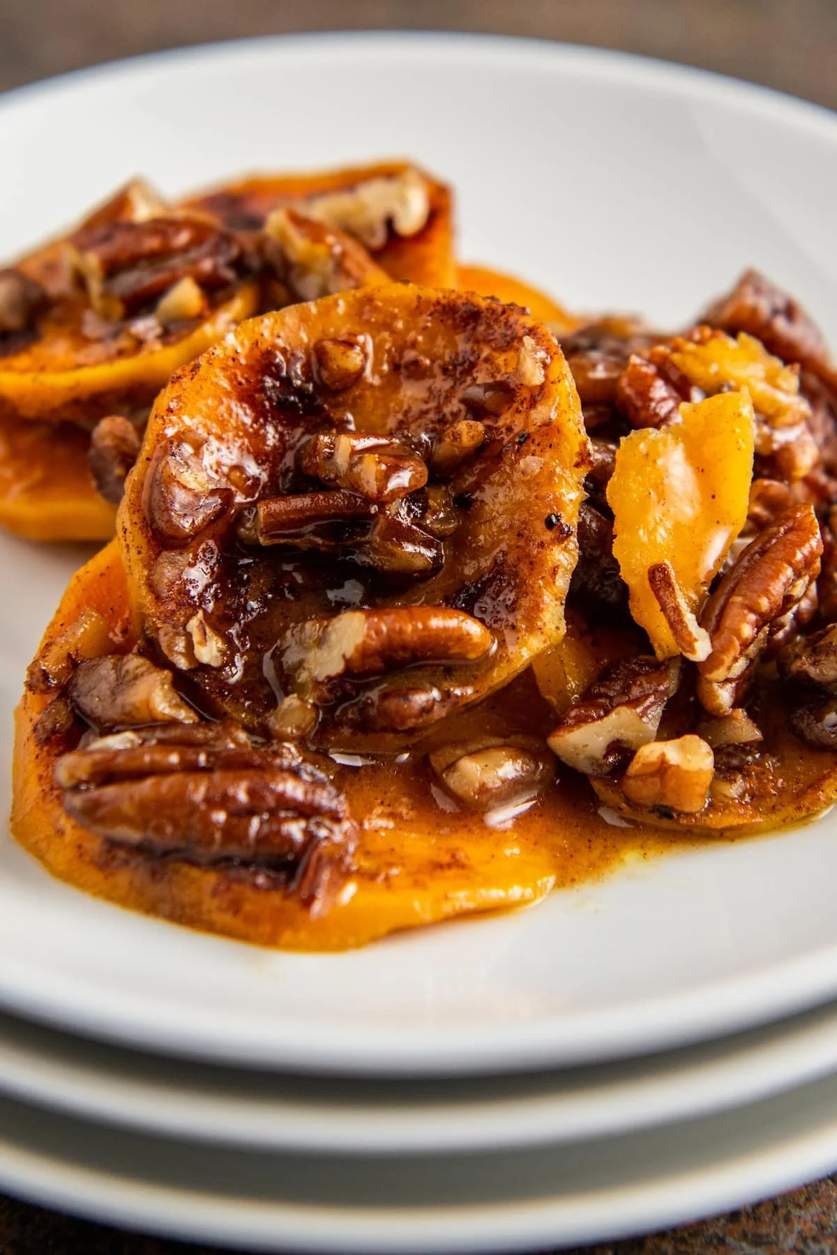 Bruleed Sweet Potatoes with Candied Pecans