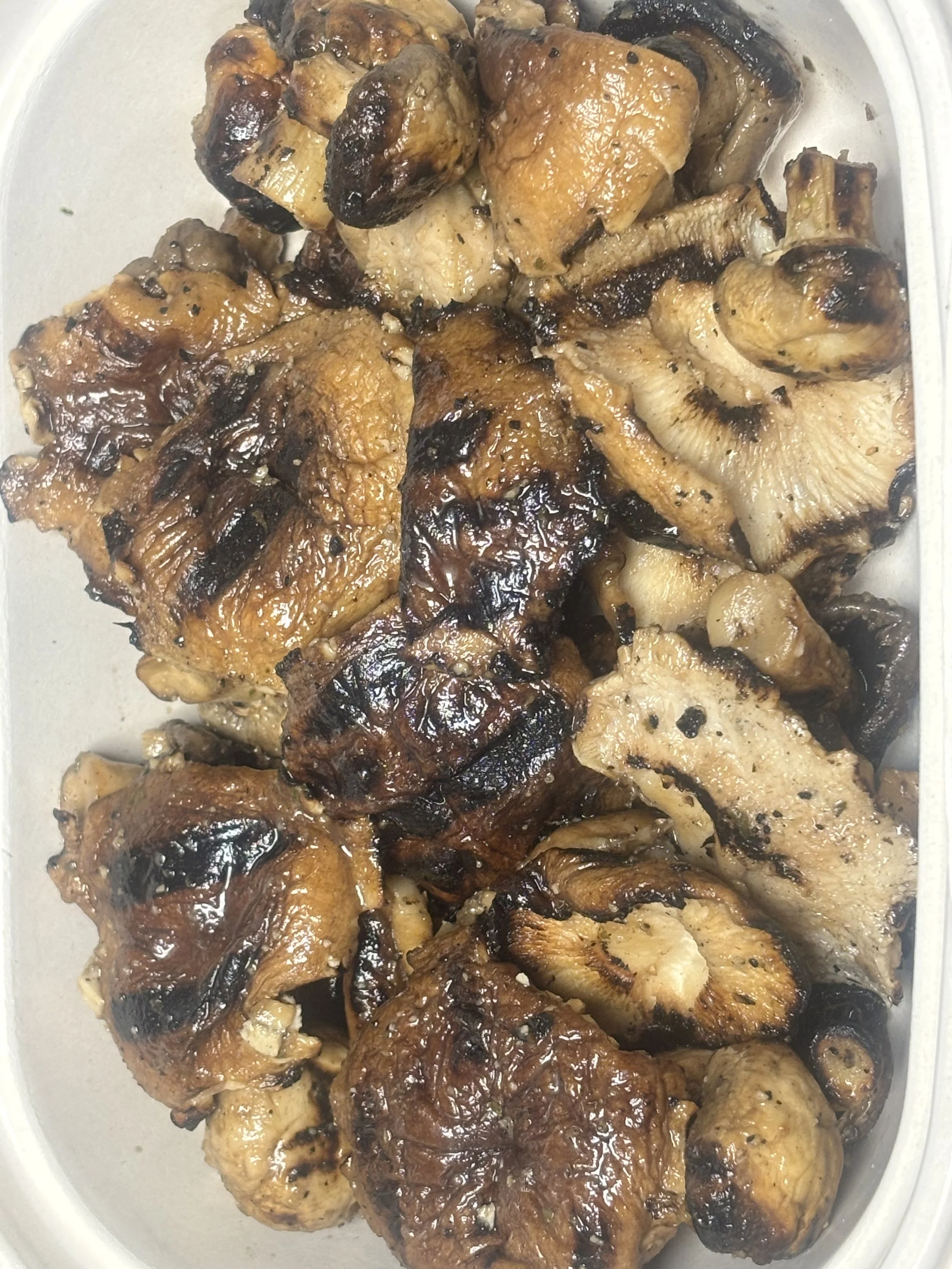 Meal Delivery or Pickup Ordering › Grilled Organic Mushrooms Image 1 of 1 Grilled Organic Mushrooms $10.00 Button and trumpet and cremini mushrooms marinated in a balsamic herb vinegar, and grilled to perfection! Add To Cart Added! Button and trumpet and cremini mushrooms marinated in a balsamic herb vinegar, and grilled to perfection!