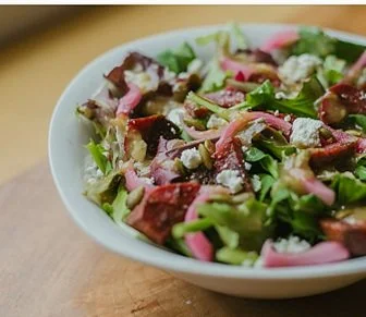 Beets (beet spice: cinnamon, ginger, nutmeg, cloves, ancho, garlic, onion, brown sugar, Aleppo, kosher salt, black pepper) olive oil, canola oil. Salad: Arugula, spinach, White Mulberry Vinaigrette (white mulberries, white wine vinegar, ginger, honey, Dijon mustard, mustard seeds, orange zest and juice, celery salt, olive oil, canola oil, kosher salt, white pepper), pickled red onions (red onions, cider vinegar, black peppercorns, kosher salt, sugar, bay leave, clove, red pepper flakes), Grilled Local Apples, Mandarin oranges, toasted pumpkin seeds. Goat Cheese (Pasteurized Cultured Goats' Milk Cultures Contain: Milk, Salt , Enzymes)